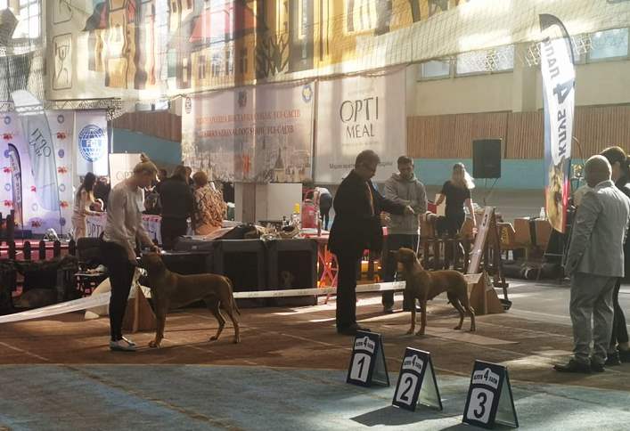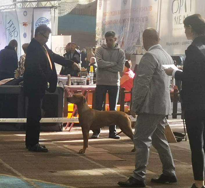 MultiCh. GrandCh. HARI Rudy Urok - klasa championów - ocena doskonała, 1 miejsce, CAC, CACIB, BOB, ukończony INTERCHAMPION (C.I.B.) !!! Sędzia: Yurii Gergel (UA); handling: Janusz Morajda.