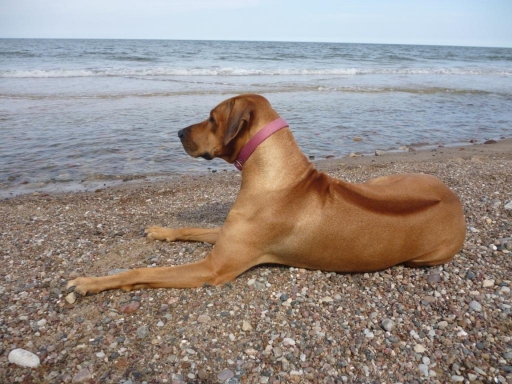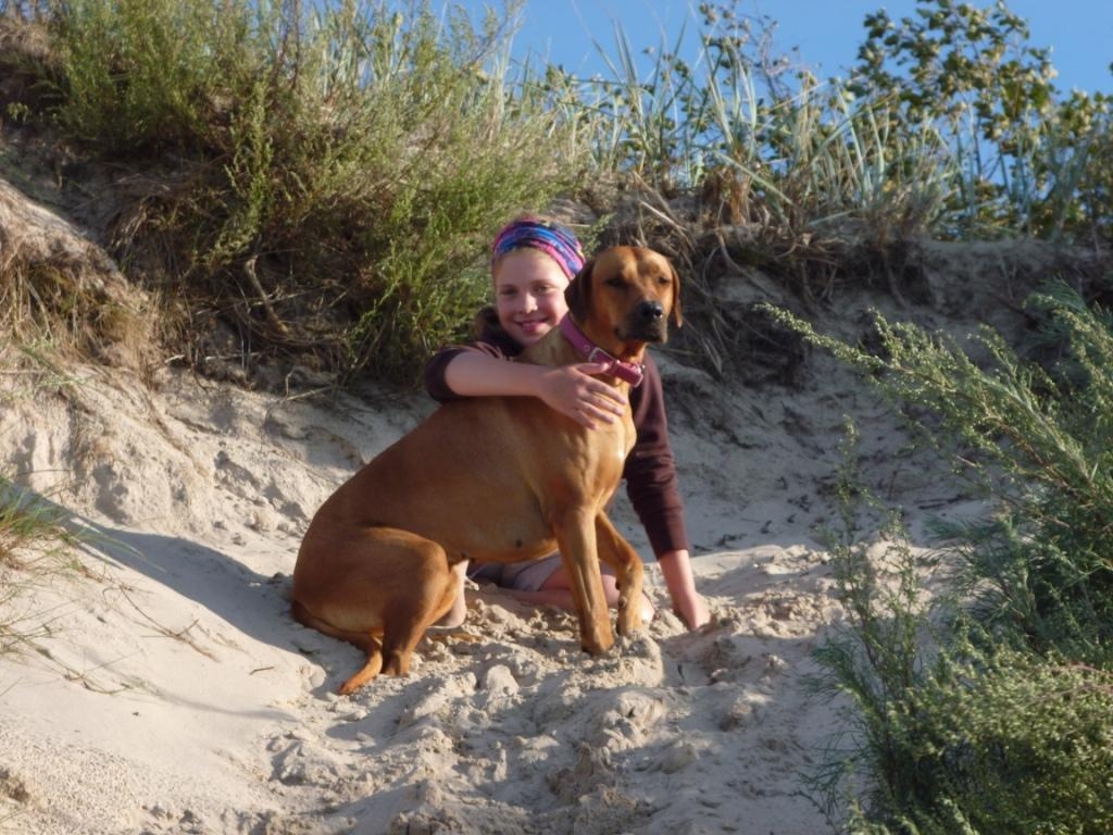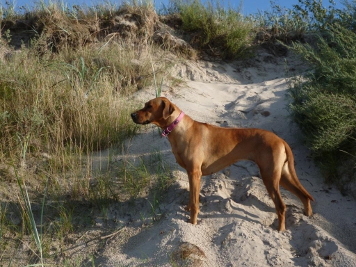 Rhodesian lubi piasek - na plaży w Sarbinowie (lato 2014)