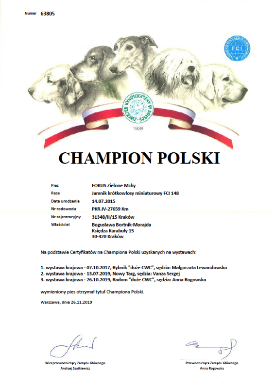 11x CACIB, 3x RCACIB, 15x CAC, 7x BOB, 2x BOG1, 2x BOG3