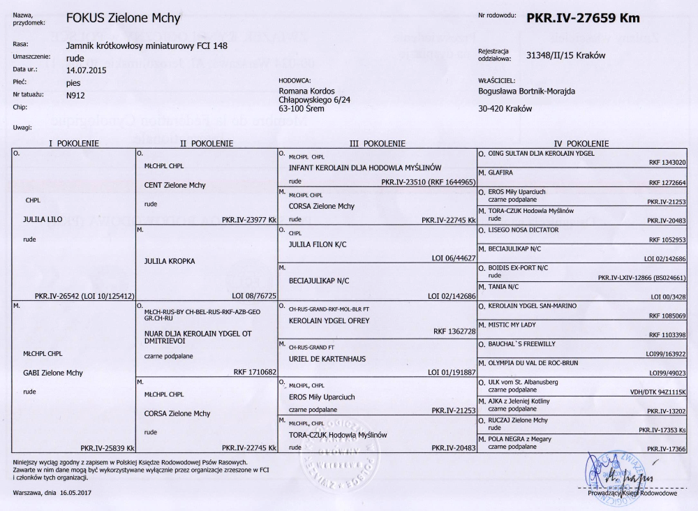 ojciec: JULILA LILO, matka: GABI Zielone Mchy